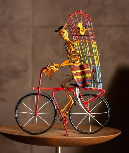 Calavera en bicicleta hecho de metal y pintado a mano
