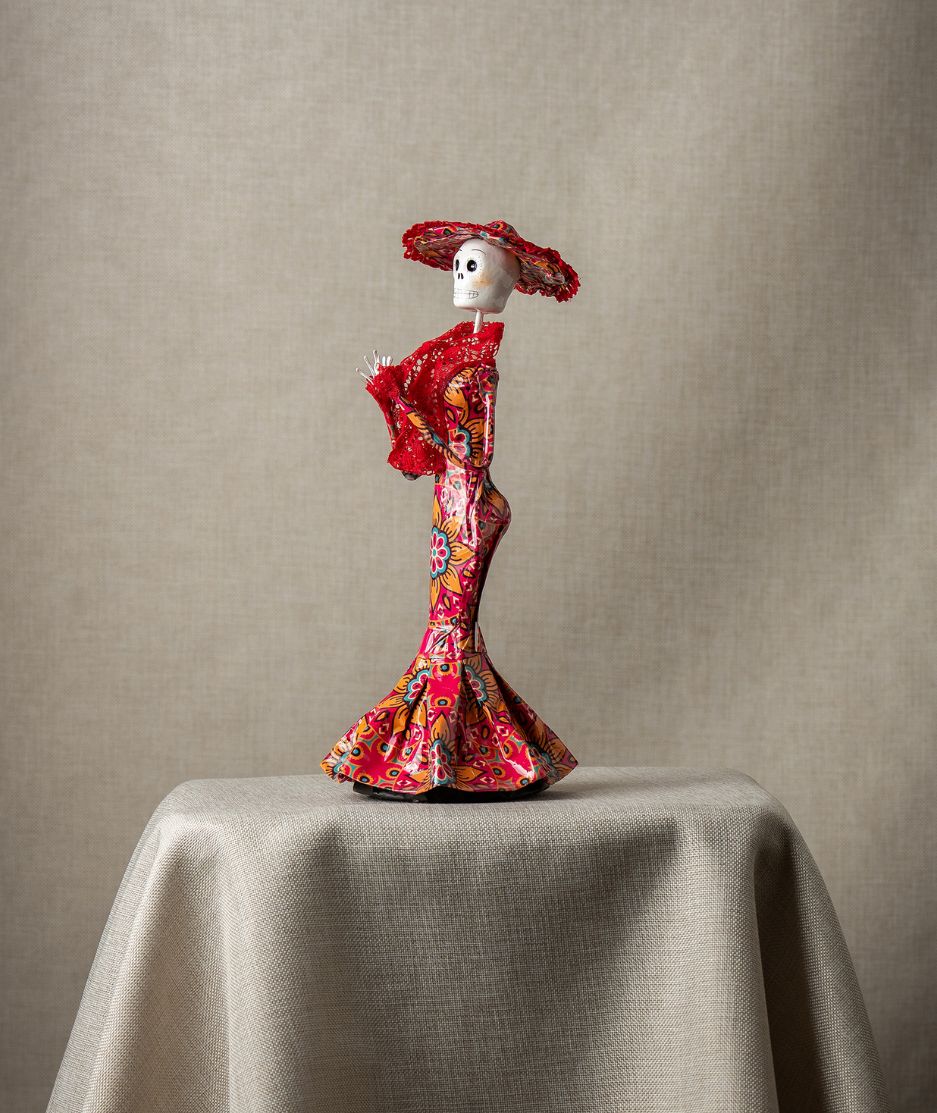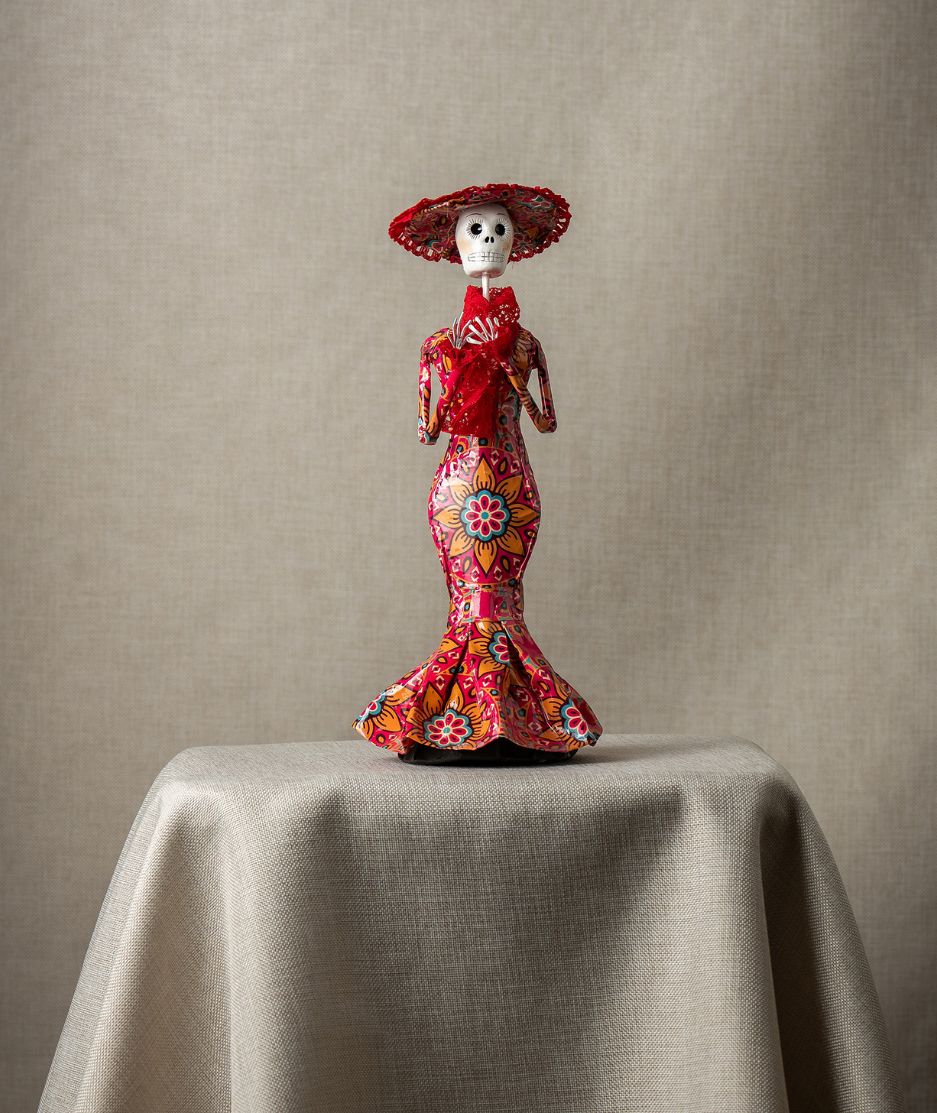 InicioCatrinasCatrina vestido elegante rojo floreado