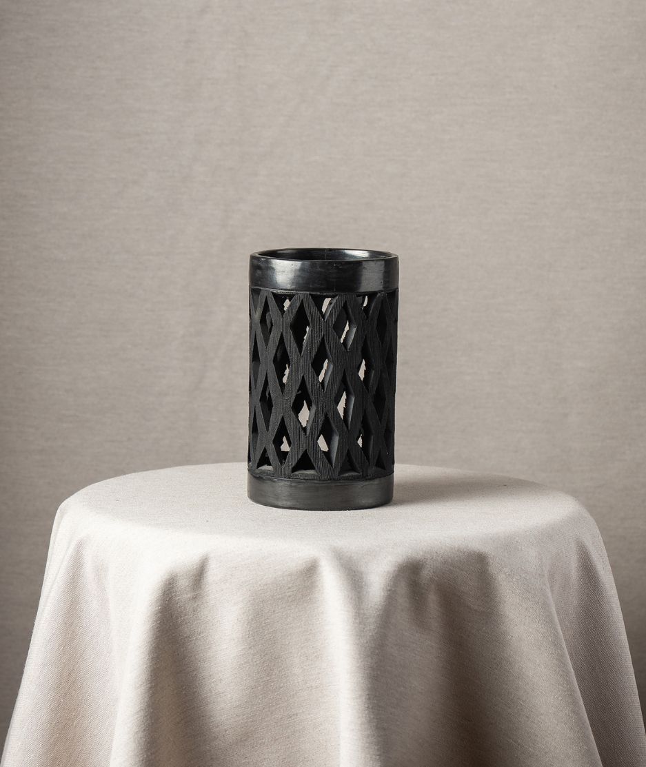 Jarron barro negro orificio con rombos