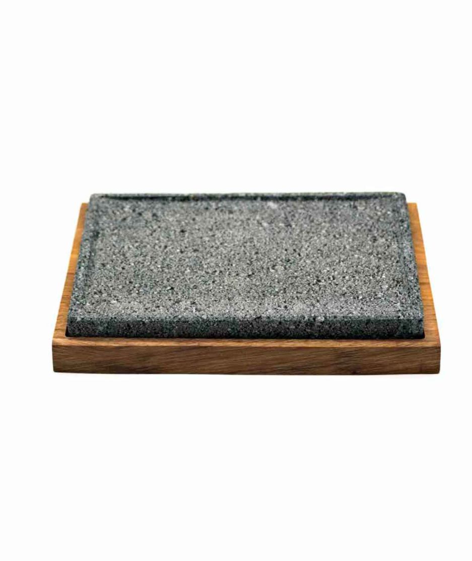 Un rescate de los utensilios de la cocina tradicional mexicana que forman parte de nuestras raíces culturales. Una propuesta de diseño fusión de piedra con Madera en forma de tabla para alimentos. Interesante presentación de un platillo completo o una presentación de tabla de carnes frías y quesos. Esta piedra se obtuvo de las Lavas Andesíticas basálticas del Paleo fuego, con una antigüedad aproximada de 60 mil a 97 mil años.
