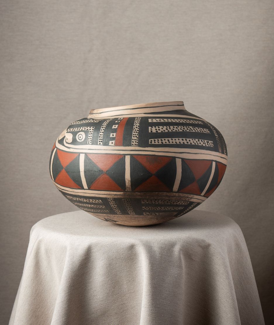 Vasija Mata Ortiz Mate Beige Negro Rojo